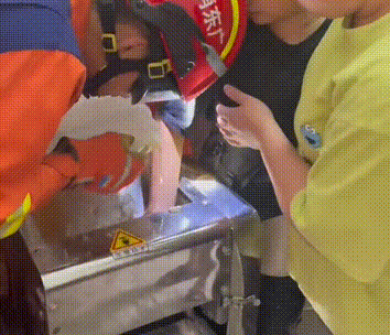 到達(dá)現(xiàn)場后,消防員發(fā)現(xiàn)男孩手掌被壓面機(jī)吞噬,導(dǎo)致手掌全面通紅。經(jīng)了解,男孩因貪玩誤把手伸進(jìn)壓面機(jī)器中,結(jié)果無法取出。