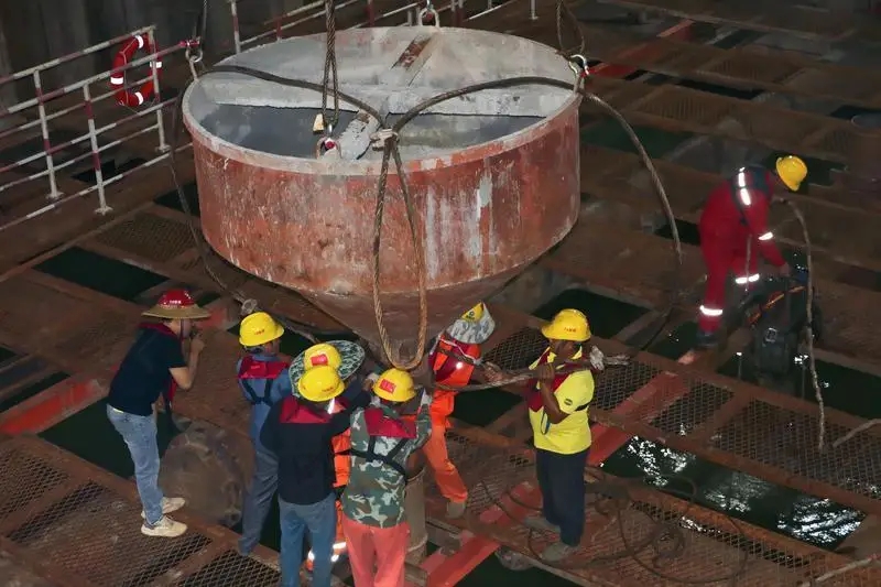 施工工人現(xiàn)場安裝導(dǎo)管,為澆筑做準(zhǔn)備。
