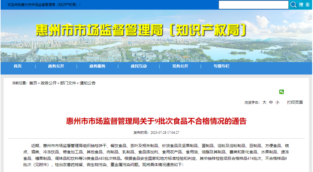 惠州市市場監(jiān)督管理局已要求轄區(qū)市場監(jiān)管部門及時對不合格食品及其生產(chǎn)經(jīng)營者進行調(diào)查處理,責(zé)令企業(yè)查清產(chǎn)品流向,采取下架、召回不合格產(chǎn)品等措施控制風(fēng)險,并分析原因進行整改。同時要求轄區(qū)市場監(jiān)管部門將相關(guān)情況記入生產(chǎn)經(jīng)營者食品安全信用檔案,并按規(guī)定在監(jiān)管部門網(wǎng)站上公開相關(guān)信息。