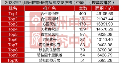 個(gè)盤表現(xiàn)方面,合生紫悅府以400套的網(wǎng)簽量摘得7月成交桂冠;合生濱海城及方圓天俊則分別以301套及170套的成績(jī)位列第二、第三名。