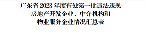 近日,省住建廳發(fā)布《關(guān)于2023年度查處第一批違法違規(guī)房地產(chǎn)開發(fā)企業(yè)、中介機(jī)構(gòu)和物業(yè)服務(wù)企業(yè)名單的公告》(以下簡(jiǎn)稱《公告》),全省共計(jì)90家房地產(chǎn)行業(yè)企業(yè)因違法違規(guī)被通報(bào)批評(píng)。其中,惠州企業(yè)29家,涉及寶悅豪庭、讀者文化園、富力尚悅居等多個(gè)樓盤項(xiàng)目。