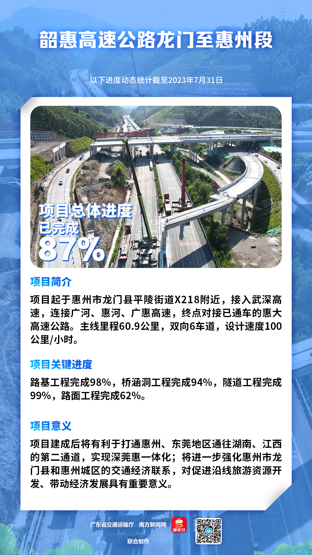 目前韶惠高速龍門(mén)至惠州段已完成87%