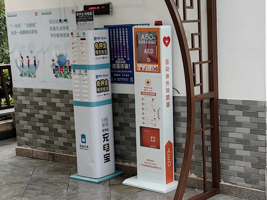 布設在惠州西湖景區(qū)(平湖門)的AED。惠州日報記者周智聰 攝