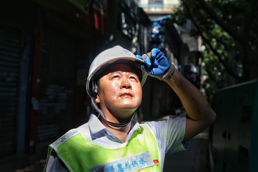 烈日當(dāng)空,驕陽似火,供水人奔走在城市供水管道每一個運輸點,汗水滑落臉龐,浸濕身上衣裳。各營業(yè)網(wǎng)點管網(wǎng)巡查員穿街走巷,重點巡查供水管網(wǎng)及附屬設(shè)施維護及查漏,發(fā)現(xiàn)供水管道滲漏、破裂等情況發(fā)生,及時反饋至供水維修隊。在用水高峰期,市供水有限公司搶修隊員24小時待命,接到反饋第一時間到現(xiàn)場處理。各水廠維修員徘徊在“桑拿房”內(nèi),重點檢查水廠機組、設(shè)備運行指標(biāo)情況,發(fā)現(xiàn)隱患苗頭,現(xiàn)場維修排除故障。