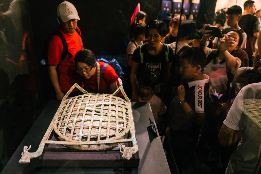 新館上新文物是最大亮點。此次新館開放,除了能看到青銅神樹等1986年出土的珍貴文物,還有600余件文物是首次和觀眾見面。6座新發(fā)現(xiàn)祭祀坑出土的300多件珍品,如3000年后再合體的青銅鳥足神像、“月光寶盒”青銅龜背形網(wǎng)格狀器、“出道即出圈”的扭頭跪坐人像、虎頭龍身像等重器悉數(shù)亮相。