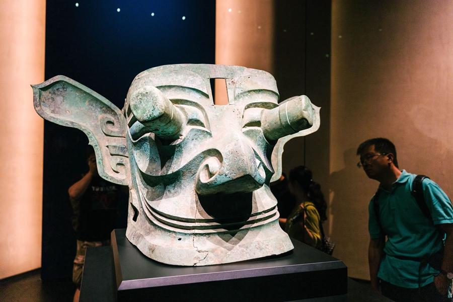 新館上新文物是最大亮點。此次新館開放,除了能看到青銅神樹等1986年出土的珍貴文物,還有600余件文物是首次和觀眾見面。6座新發(fā)現(xiàn)祭祀坑出土的300多件珍品,如3000年后再合體的青銅鳥足神像、“月光寶盒”青銅龜背形網格狀器、“出道即出圈”的扭頭跪坐人像、虎頭龍身像等重器悉數(shù)亮相。