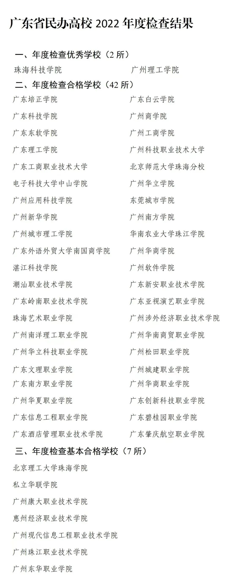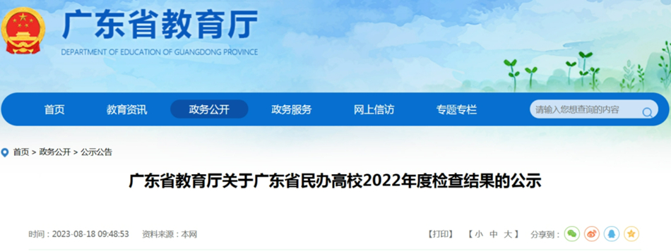 根據(jù)廣東省民辦高等學(xué)校年度檢查工作安排,現(xiàn)將2022年度檢查結(jié)果予以公示。