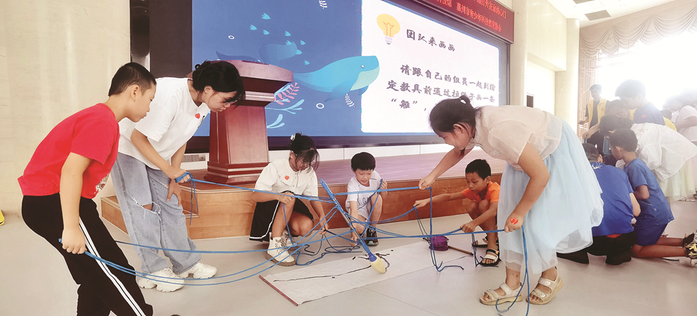 記者現(xiàn)場看到,每組學員一起拿起教具,通過拉繩子畫“船”來提高團隊合作能力,受到大家的歡迎。“這樣的活動很有意思,大家進行互動,增進了感情。”學員小余說,活動中,大家需要不斷交流并形成合力,才能高效地完成任務。