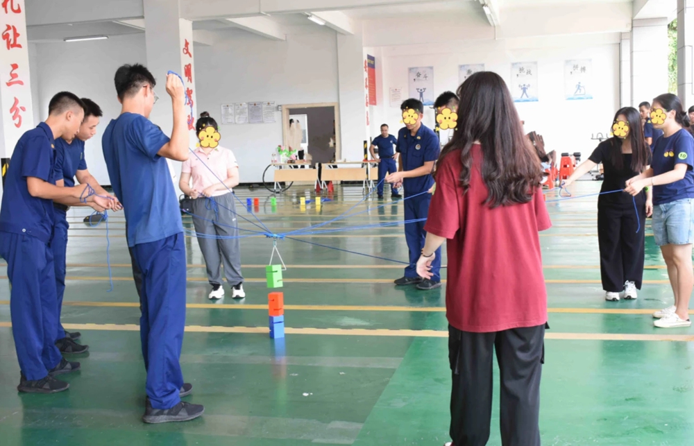 隨后,在主持人風(fēng)趣幽默、熱情洋溢的鼓勵(lì)和帶動(dòng)下,活動(dòng)正式拉開(kāi)序幕。“自我介紹”“合力建塔”“呼啦圈接力”“快樂(lè)搶水瓶”……隨著一個(gè)個(gè)趣味互動(dòng)小游戲的進(jìn)行,雙方都展示了自己的性格和才華。