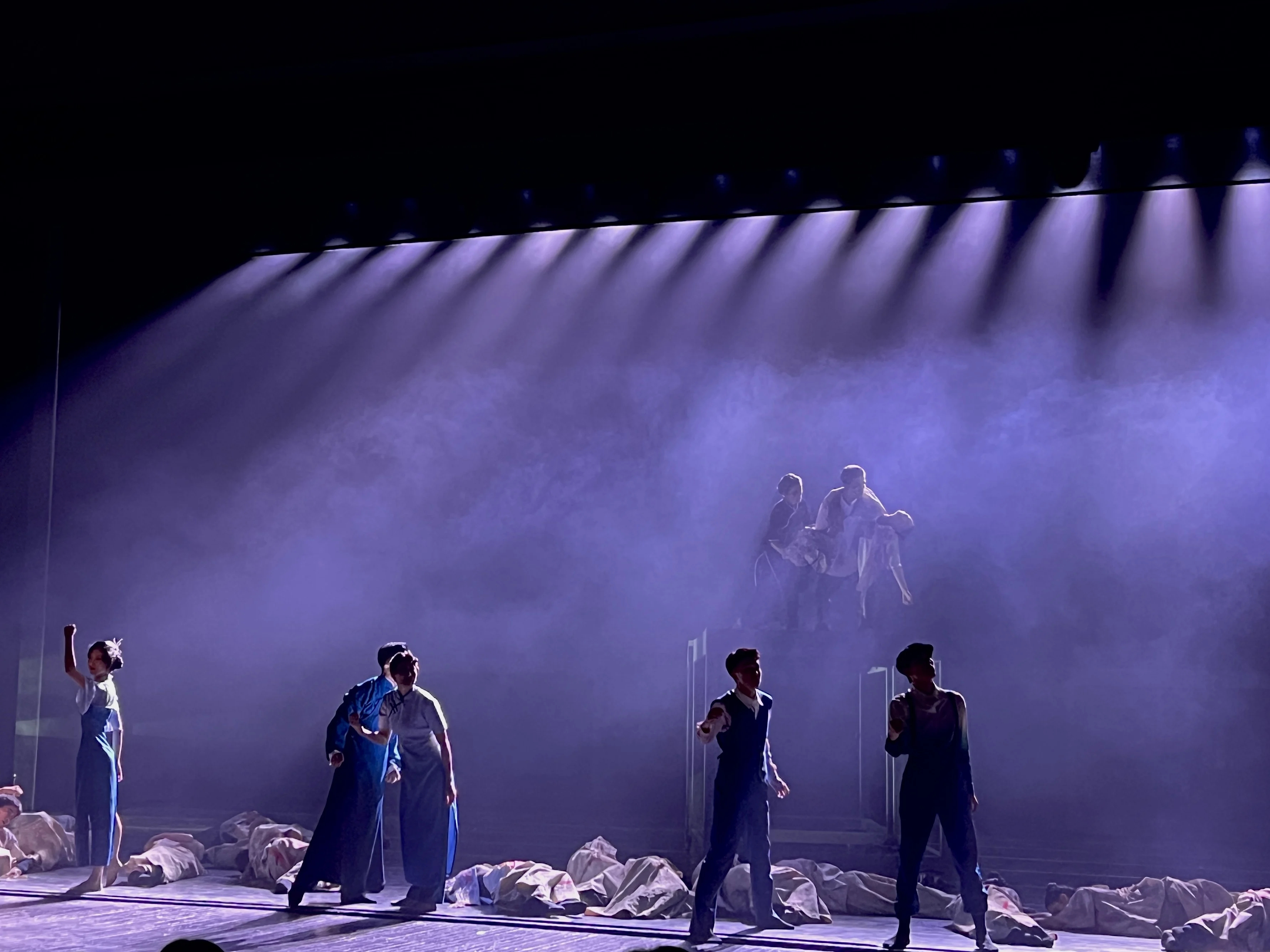 舞劇《1942穿越封鎖線》以“省港大營救”為主題背景展現(xiàn)動蕩年代下共產(chǎn)黨員的堅(jiān)定信仰,用舞蹈重塑那個沒有硝煙的戰(zhàn)場。該劇運(yùn)用電影感敘事,突破傳統(tǒng)模式,增添了舞劇形式的可看性。同時,舞劇中巧妙地融入惠州非遺項(xiàng)目,如惠東漁歌、舞麒麟,舞美呈現(xiàn)上融進(jìn)了極具地域特色的視覺元素。