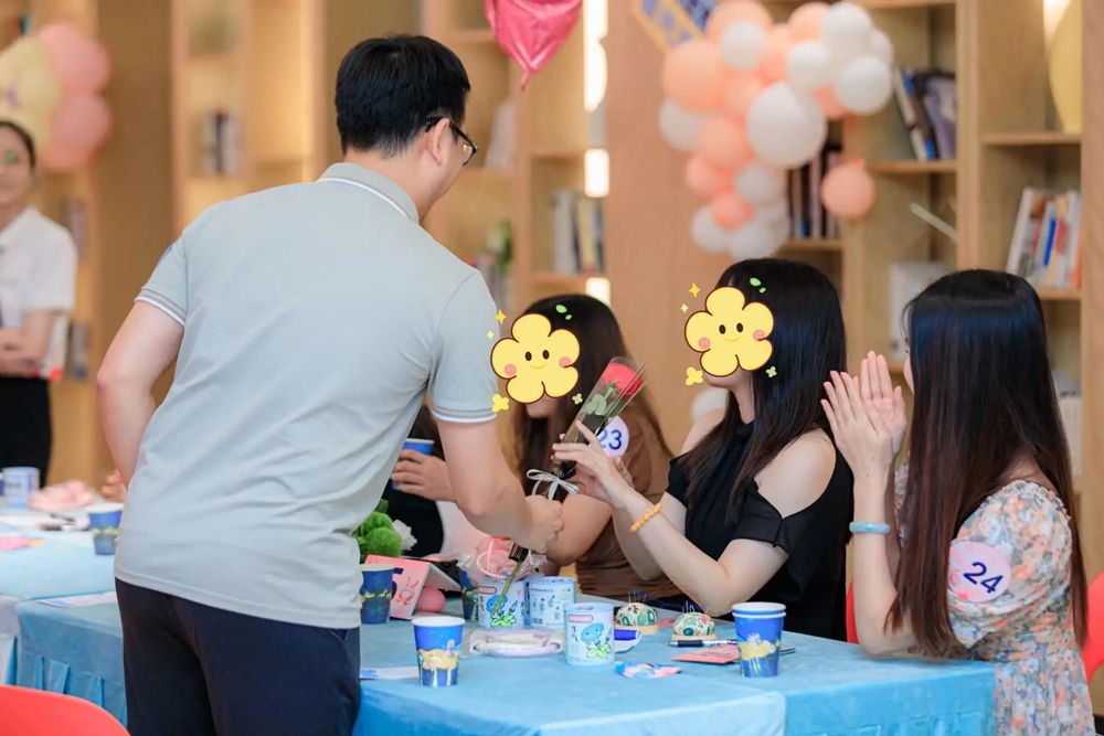 彩色的氣球、精美的甜點(diǎn)、盛放的鮮花,讓現(xiàn)場(chǎng)氛圍更加輕松,處處洋溢著甜蜜浪漫的氣息,也讓陌生青年男女快速放下緊張和防備,進(jìn)入一場(chǎng)沉浸式交友體驗(yàn)。創(chuàng)意新穎、編排巧妙的互動(dòng)游戲,更是叩開(kāi)了現(xiàn)場(chǎng)青年男女的“心門(mén)”,在某個(gè)不經(jīng)意之間,便悄然播下愛(ài)情的種子,只待在下一秒便生根發(fā)芽。