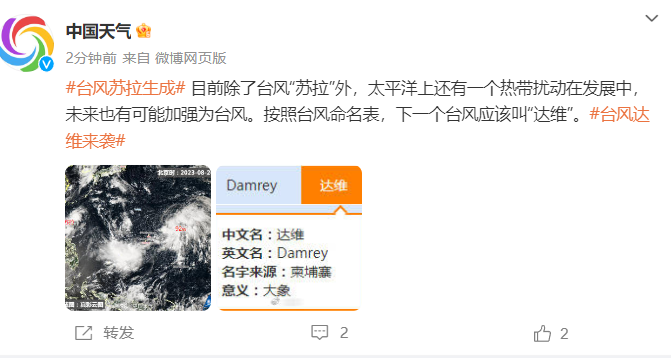 目前除了臺(tái)風(fēng)”蘇拉”外,太平洋上還有一個(gè)熱帶擾動(dòng)在發(fā)展中未來(lái)也有可能加強(qiáng)為臺(tái)風(fēng)。按照臺(tái)風(fēng)命名表,下一個(gè)臺(tái)風(fēng)應(yīng)該叫”達(dá)維”。