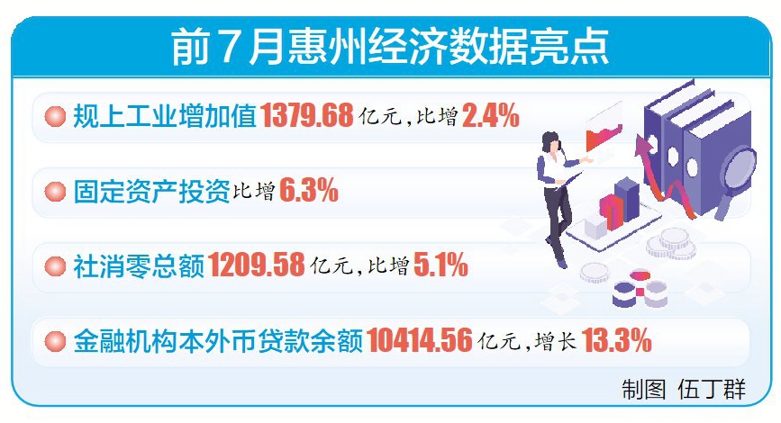 面對復(fù)雜嚴峻的外部環(huán)境,“萬億工業(yè)大市”惠州深入實施制造業(yè)當家戰(zhàn)略,穩(wěn)中求進,今年1~7月,規(guī)上工業(yè)增加值1379.68億元,同比增長2.4%;固定資產(chǎn)投資同比增長6.3%;社消零總額1209.58億元,同比增長5.1%;金融機構(gòu)本外幣貸款余額10414.56億元,增長13.3%。惠州全市經(jīng)濟運行整體回升向好,尤其是工業(yè)經(jīng)濟,穩(wěn)住了增長態(tài)勢,提升了質(zhì)量,展現(xiàn)出強大的韌性和活力。