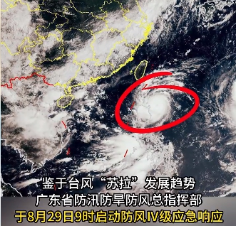 鑒于臺風“蘇拉”發(fā)展趨勢及對我省影響,根據(jù)《廣東省防汛防旱防風防凍應急預案》和省防總有關規(guī)定,廣東省防汛防旱防風總指揮部決定于8月29日9時啟動防風Ⅳ級應急響應。