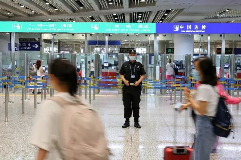 8月24日,旅客從首都機(jī)場3號航站樓邊檢出境執(zhí)勤現(xiàn)場前走過。暑假期間,乘機(jī)出游人群增多。新華社發(fā)