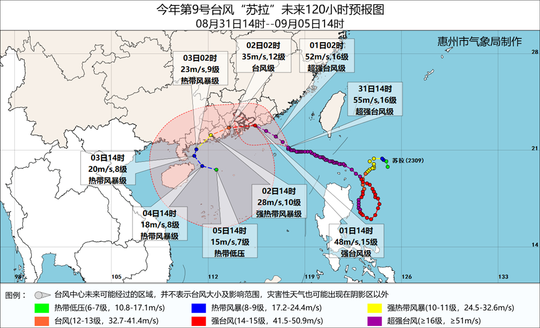 根據(jù)氣象部門(mén)預(yù)測(cè),今年第9號(hào)臺(tái)風(fēng)“蘇拉”(超強(qiáng)臺(tái)風(fēng)級(jí))將于9月1日下午至夜間在惠來(lái)到香港一帶沿海登陸(強(qiáng)臺(tái)風(fēng)級(jí)或超強(qiáng)臺(tái)風(fēng)級(jí),14級(jí)~16級(jí)),或近海擦過(guò)折向西偏南方向。為全力保障人民群眾生命財(cái)產(chǎn)安全,我區(qū)將于8月31日晚適時(shí)啟動(dòng)防臺(tái)風(fēng)Ⅰ級(jí)應(yīng)急響應(yīng),并在全區(qū)范圍內(nèi)實(shí)行“五停”措施(即:停課、停工、停產(chǎn)、停運(yùn)、停業(yè)),請(qǐng)廣大市民提前做好準(zhǔn)備,做好個(gè)人防護(hù),保障家人安全。