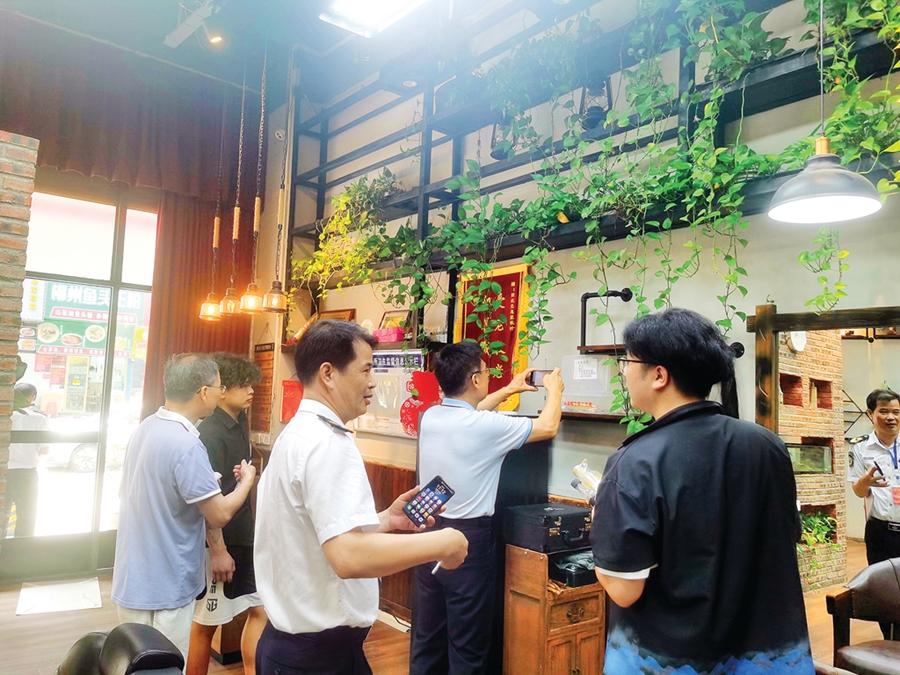 評估組到店鋪開展督導(dǎo)排查。惠州日報記者鄔玉婷 通訊員楊華坤 攝
