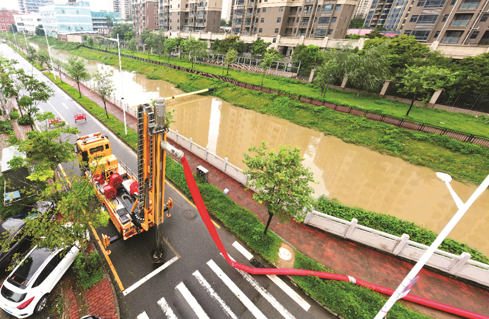 在城市與村莊道路、施工工地、地質(zhì)災(zāi)害隱患點等重點區(qū)域,大亞灣各街道各部門“救援隊”沖鋒在前,“巡查隊”防微杜漸。9月2日上午,大亞灣石化區(qū)某施工工地低洼地帶和周邊道路出現(xiàn)內(nèi)澇,大亞灣消防救援部門和市政人員及時出動排水。在澳頭街道格木洞村,河水漫過村里的涉水橋,街道辦和村委會干部組織人員及時疏通被雨水沖刷下來的樹枝淤泥等雜物,保證道路暢通。