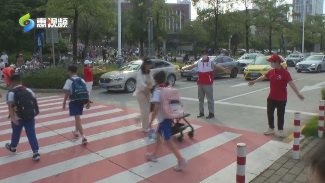 在新生“報到潮”中 ,志愿者是其中一道亮眼的風(fēng)景線。上午,來自惠陽星河社區(qū)志愿服務(wù)隊的志愿者在學(xué)校附近協(xié)助疏導(dǎo)交通,配合現(xiàn)場管理人員維持上下學(xué)秩序,為廣大學(xué)生上學(xué)保駕護(hù)航。