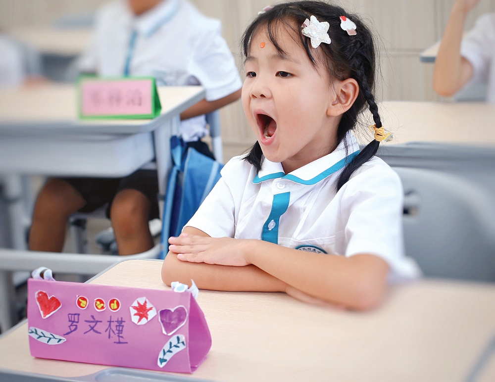在博羅縣羅陽第四小學,一大早,教室里就書聲瑯瑯。度過一個暑假的孩子們回到學校,表現(xiàn)各異,有的孩子還沒適應開學的作息時間,有的還帶著來不及吃的早餐走進教室,一些低年級的孩子則哭鬧著不讓父母離開,也有的孩子與朋友們重逢,玩得不亦樂乎。