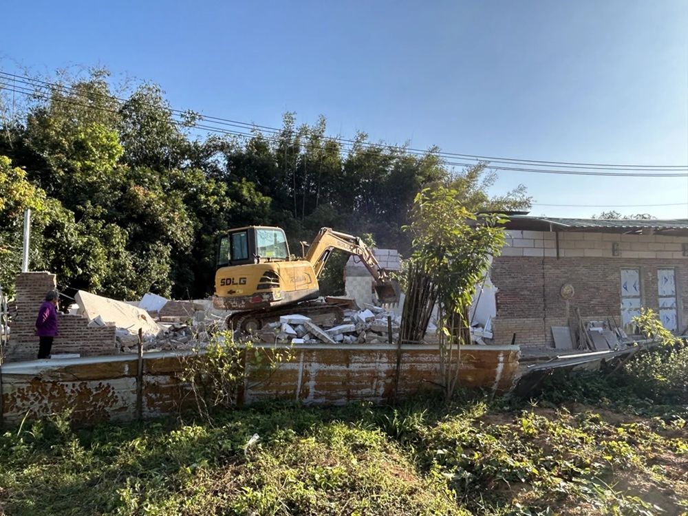 28日上午,楊村政府出動(dòng)6人次,車(chē)輛3車(chē)次,動(dòng)用工人2人,挖機(jī)1臺(tái),對(duì)水華寨村共一宗違法用地建筑進(jìn)行拆除。占地面積共124平方,拆除面積124平方。已拆除完畢。