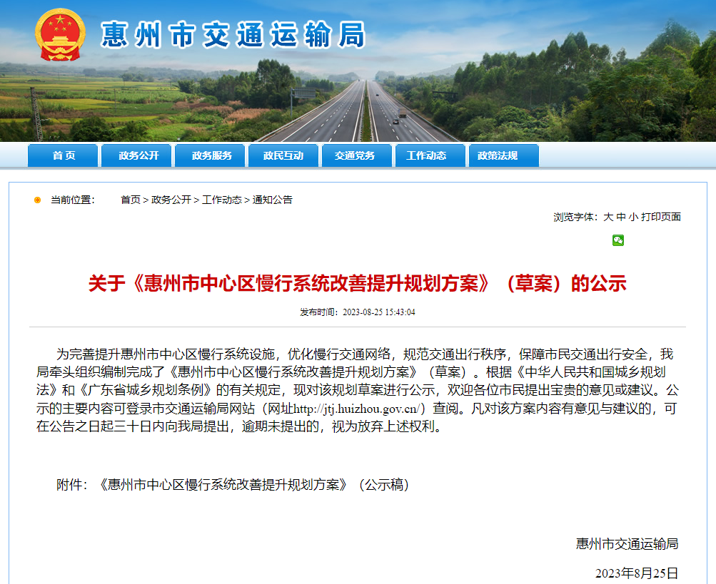 近日,惠州市交通運(yùn)輸局發(fā)布了《惠州市中心區(qū)慢行系統(tǒng)改善提升規(guī)劃方案》(草案)。