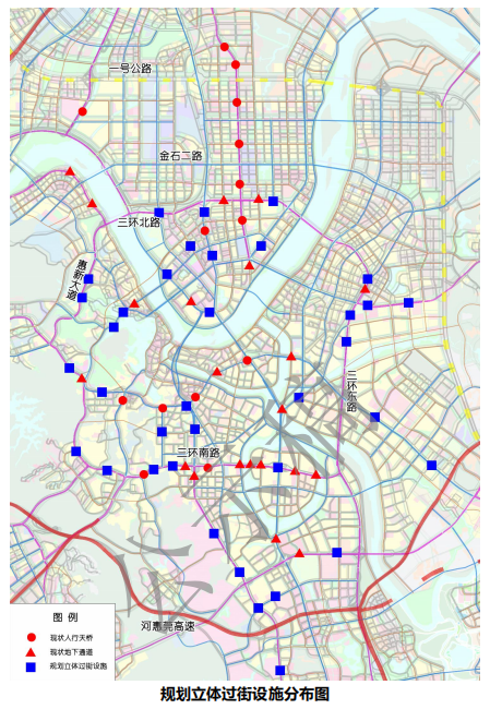 以注重便利性、安全性、可達(dá)性為原則,方案中提到規(guī)劃新增多處立體過街設(shè)施,未來也將結(jié)合慢行系統(tǒng)過街實(shí)際需求和道路改擴(kuò)建等逐步實(shí)施。