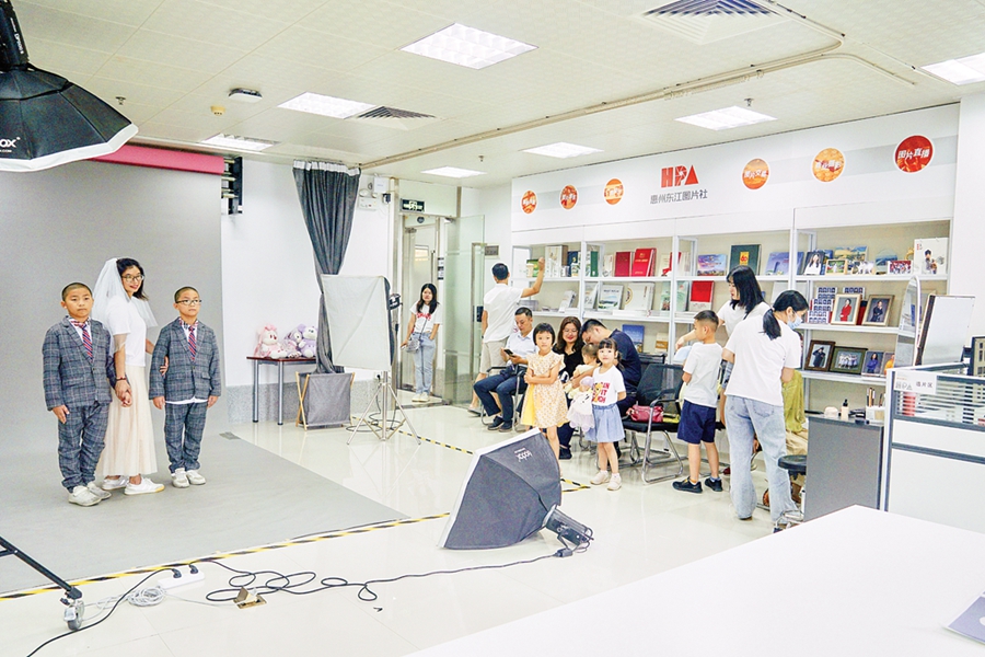 來自惠州市第十一小學(xué)方直分校的吳冬霞老師帶著爸爸媽媽和兩個孩子來到了惠州日報社。“我們是通過推文得知有這項活動,看到名額有限,馬上就報名了。今天的拍攝很滿意,攝影師都很專業(yè)。”吳冬霞老師覺得這一系列惠民攝影活動不單單是給教師的福利,同時也是對各行各業(yè)工作者的回饋。