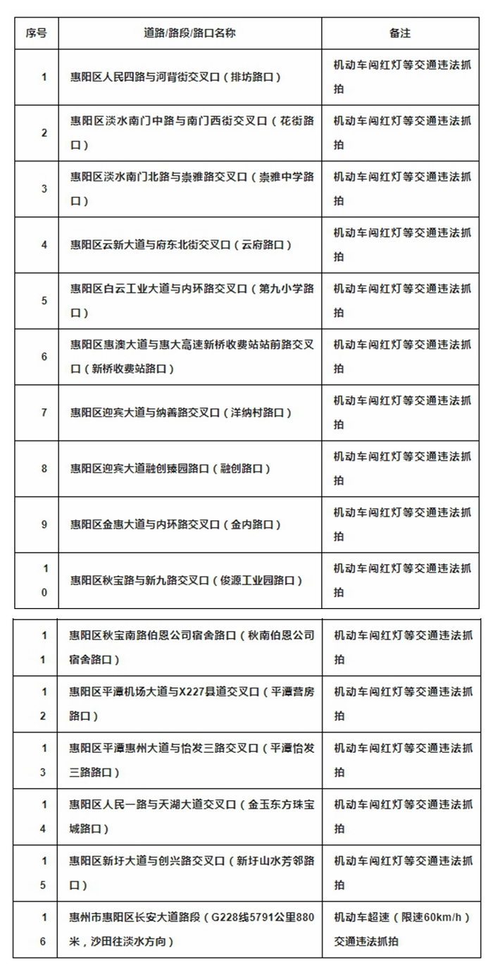 關(guān)于啟用惠陽區(qū)16個(gè)點(diǎn)位交通技術(shù)監(jiān)控設(shè)備的公告