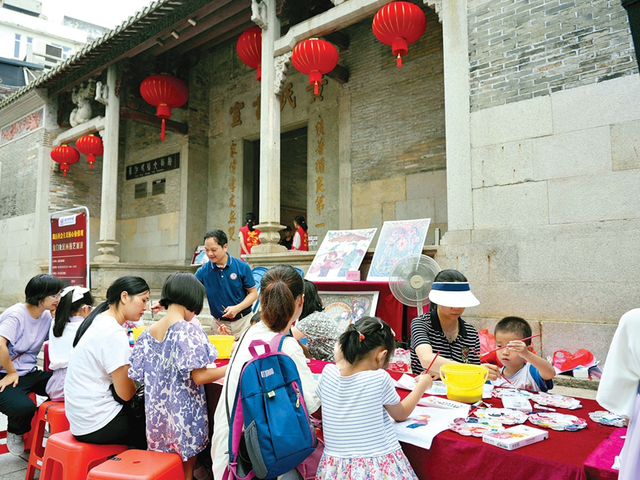 當天上午,在東江民俗文物館,一場龍門農民畫技藝展演吸引了不少家長和孩子熱情參與。龍門農民畫歷史悠久、色彩絢爛、內涵豐富,被稱作“嶺南藝術奇葩”,是惠州一張閃亮的文化名片。“這樣的活動很好,能讓孩子感受到傳統(tǒng)文化的魅力和博大精深。”參與活動的市民紛紛點贊。