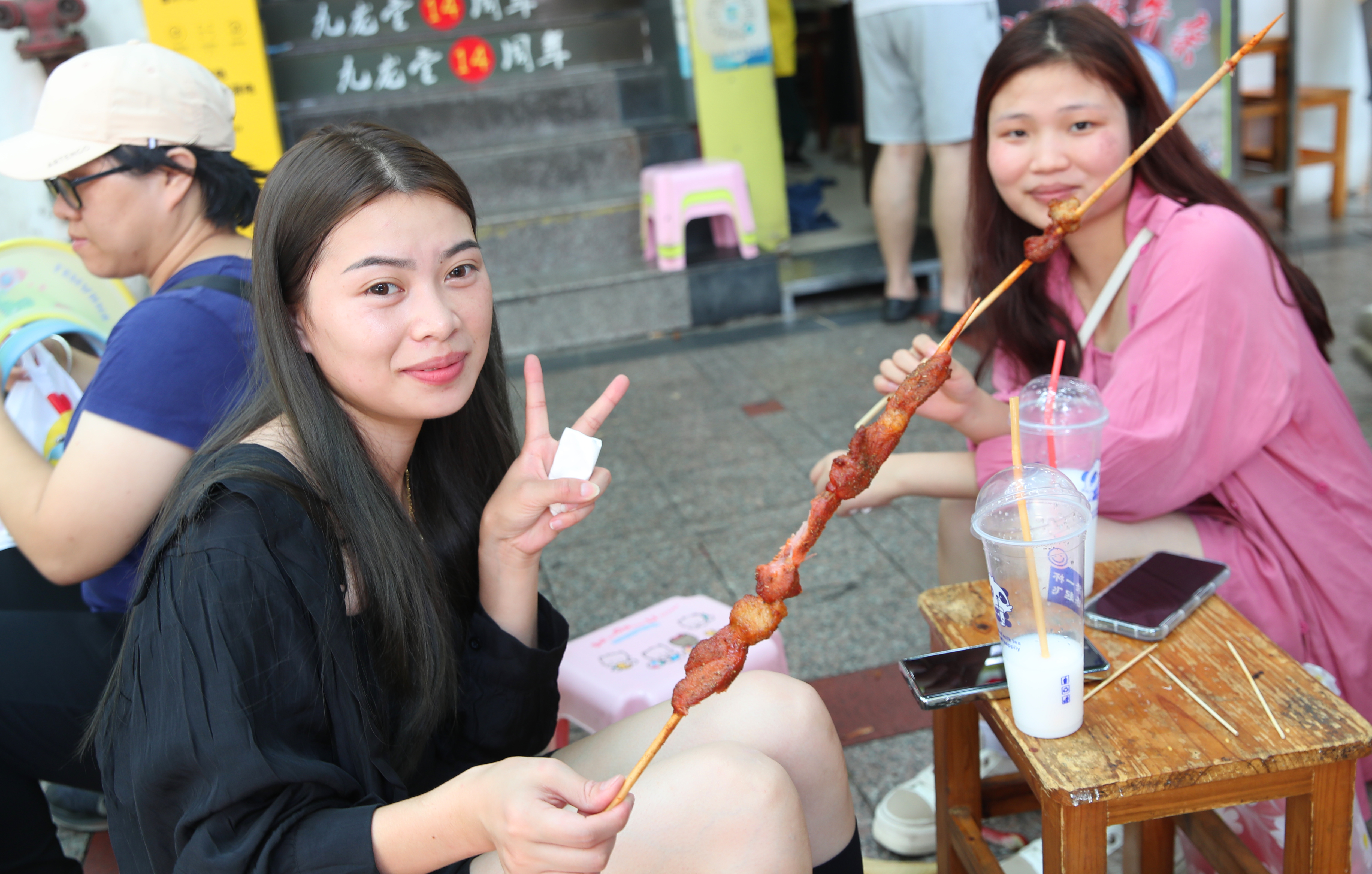 逛累了,吃烤串解乏。