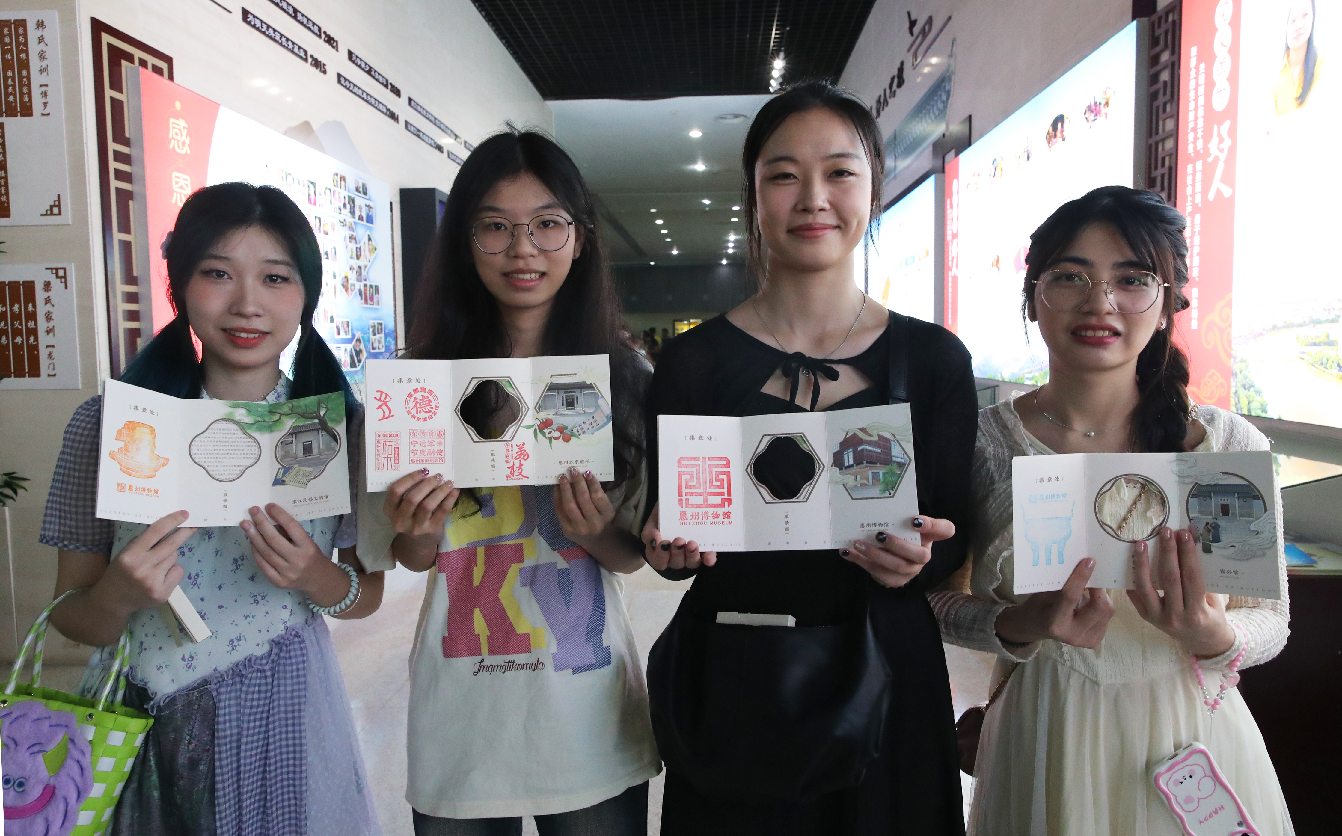 走紅的“蓋章式旅游”成為年輕人新寵,幾位年輕人展示她們收集的打卡明信片。