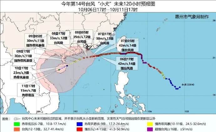 6日17時,強(qiáng)臺風(fēng)“小犬”中心位于