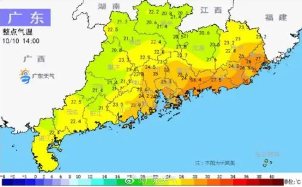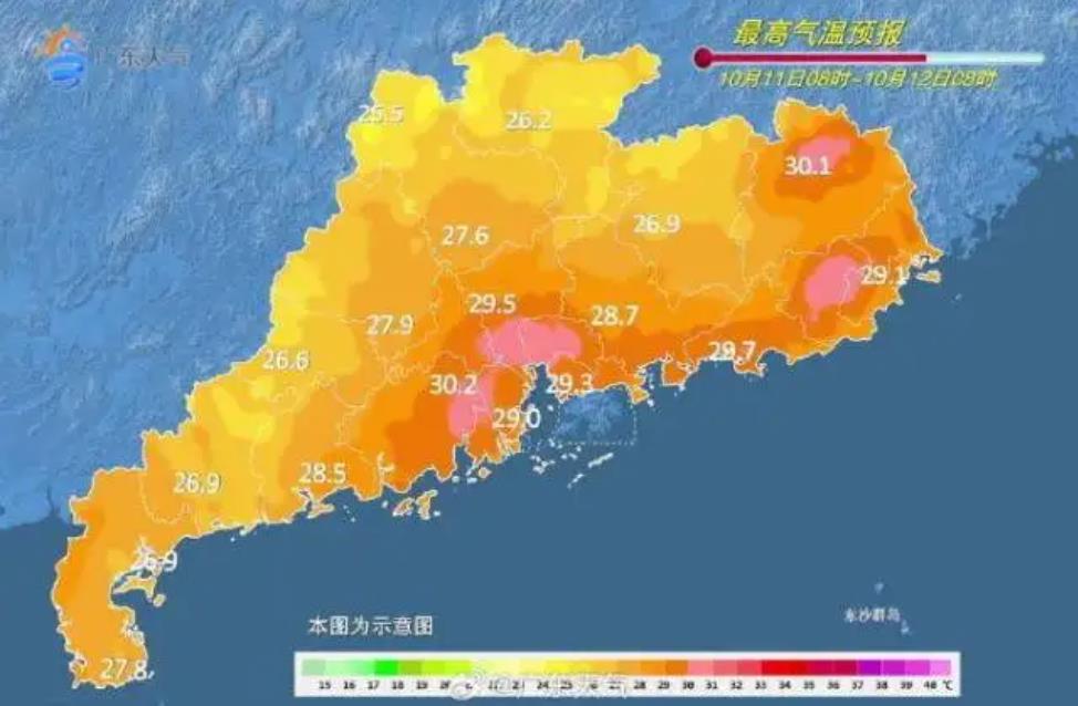 11日,雷州半島中雨轉(zhuǎn)陣雨,其余市縣陰天到多云,局部有陣雨。最高氣溫:清遠(yuǎn)、韶關(guān)、河源北部、雷州半島南部市縣24℃~27℃,其余大部28℃~30℃。