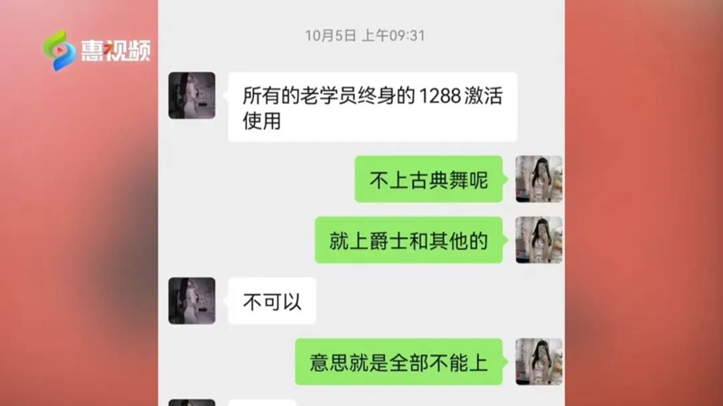 舞蹈店新負(fù)責(zé)人 黃女士:“交1288元,我們繼續(xù)學(xué),該怎么學(xué)我們還是怎么學(xué),就沒有什么限制。那如果說想退費(fèi),她們是需要找到之前收到她們錢的盧女士退。”