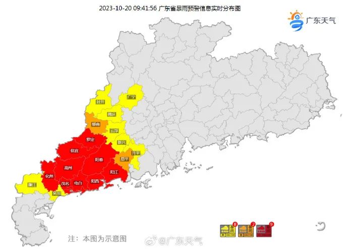 廣東多個(gè)暴雨預(yù)警生效中