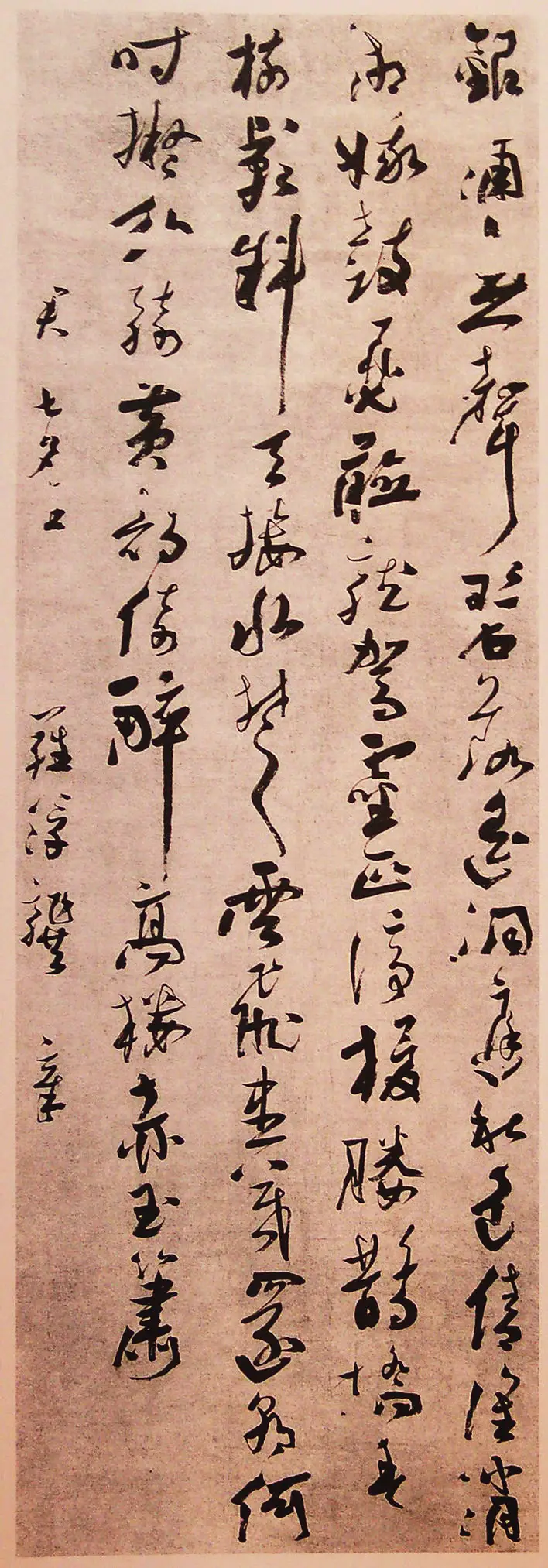 說到龔章書法淵源,論者多提及明末清初嶺南遺民書家彭睿瓘(號(hào)竹本)。對(duì)他的行草詩(shī)軸,林亞杰先生以為龔章“其書結(jié)體、草法,均與彭竹本相似”。(《廣東歷代書法圖錄》),陳永正先生更指其“拗折處取法彭竹本,而用筆飛騰變化之處,似更凌彭氏而上”,是“竹本派書家中最有成就”者(《嶺南書法史》)。廣州博物館藏彭氏書《七言詩(shī)二首》,第二首題為《送同人周藻思從章含五太史入都門》,可知彭睿瓘與龔章確曾有過交往,惜乎史料簡(jiǎn)缺,二人具體關(guān)系以及其書法淵源目前尚難詳考。有意思的是,彭、龔二氏,都曾在清初嶺南書壇健筆縱橫,卻由于種種原因而埋沒草萊,幾乎成為歷史的“失蹤者”,現(xiàn)在竟又逐漸露出本真,走進(jìn)人們的視線。天意如斯,令人感嘆。