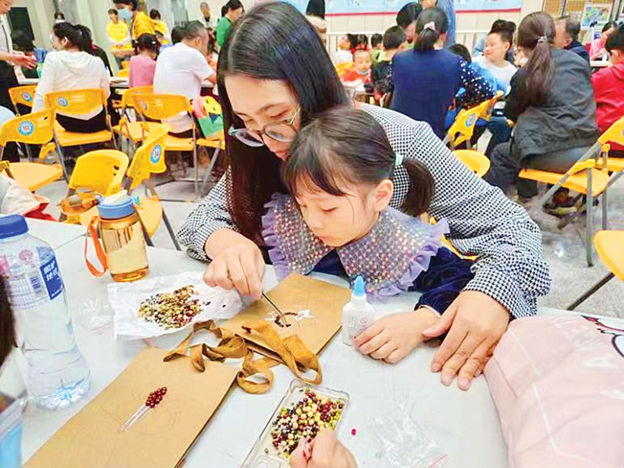 家長帶孩子體驗(yàn)中醫(yī)藥文化。惠州日報(bào)記者劉豪偉 通訊員葉淑瓊 攝