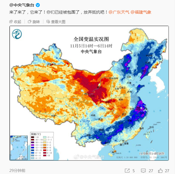 今年下半年首個寒潮預警發(fā)布