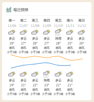 周六,多云,21~28℃;