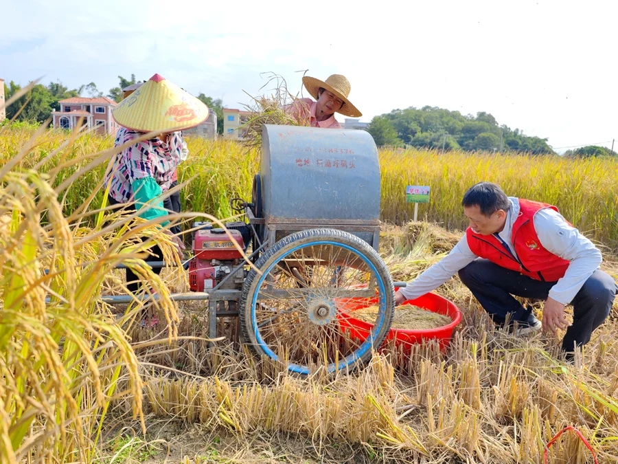 今年7月份,惠州首次引進(jìn)多功能精量氣播(旱播)機(jī),在撂荒地上示范種植節(jié)水抗旱稻,如今正是晚稻收獲的季節(jié),11月7日上午,在惠城區(qū)汝湖鎮(zhèn)仍北村,惠州市農(nóng)業(yè)農(nóng)村綜合服務(wù)中心聯(lián)合惠城區(qū)農(nóng)業(yè)技術(shù)推廣中心對(duì)節(jié)水抗旱稻進(jìn)行測(cè)產(chǎn),結(jié)果顯示,我市節(jié)水旱稻機(jī)械直播技術(shù)測(cè)產(chǎn)畝產(chǎn)最高達(dá)1061.76斤(濕谷)。此次旱稻測(cè)產(chǎn)平均產(chǎn)量超過全市水稻平均畝產(chǎn)水平,旱稻種植經(jīng)驗(yàn)做法值得在惠州進(jìn)行示范推廣。