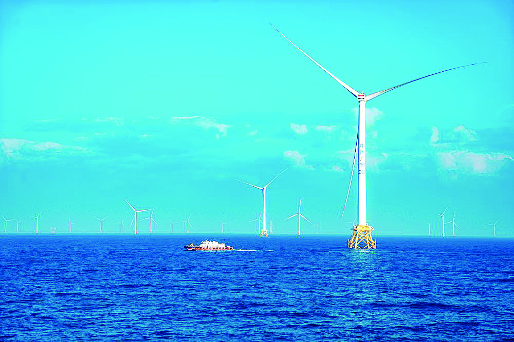 在惠東縣稔平半島以南的海域,40臺(tái)單支葉片長達(dá)86.5米的風(fēng)機(jī)佇立在湛藍(lán)的海上,海風(fēng)吹動(dòng)葉輪,風(fēng)動(dòng)就轉(zhuǎn)化為電能,點(diǎn)亮萬家燈火。在它們的旁邊,新的風(fēng)機(jī)安裝正在有序開展,到今年底,這里將新屹立64臺(tái)機(jī)組。