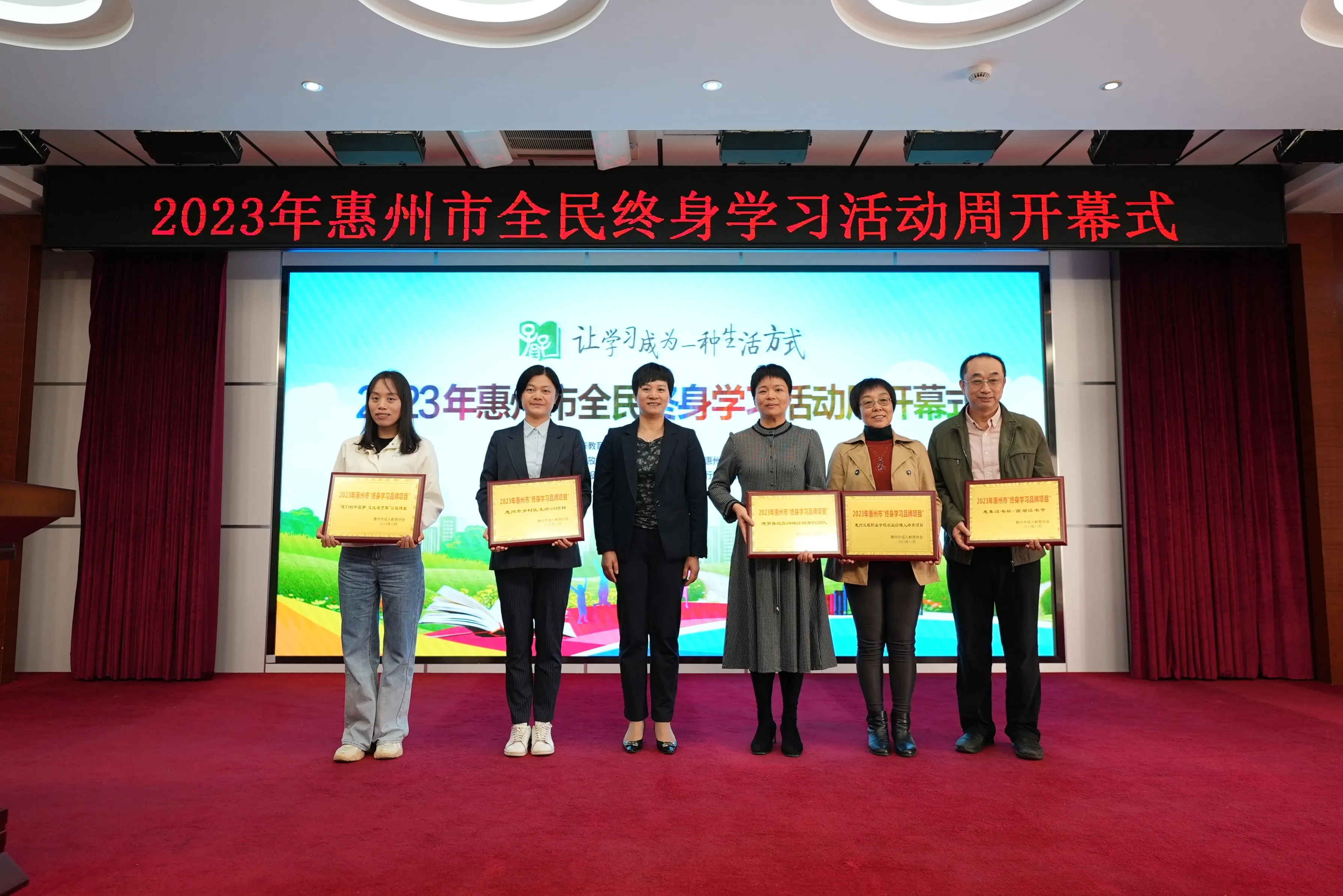 開幕式上表彰了2023年惠州市 “百姓學(xué)習(xí)之星”和2023年惠州市“終身學(xué)習(xí)品牌項(xiàng)目”。