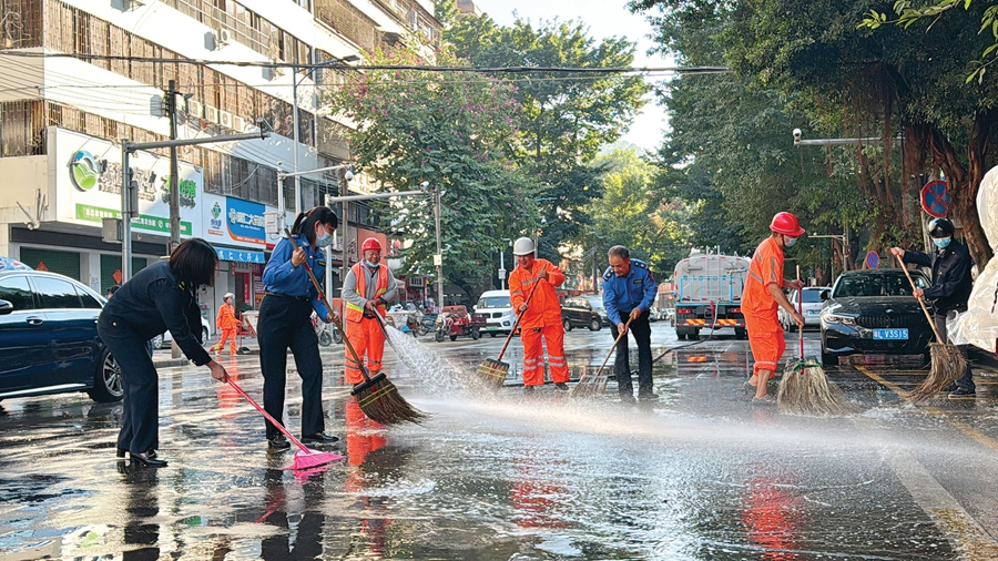 據(jù)悉,該中心以問題為導向,主動牽頭協(xié)調(diào)相關(guān)部門,針對市區(qū)主要出入口、“兩江一河”沿岸、江邊公園、綠化帶、農(nóng)貿(mào)市場周邊等開展環(huán)境衛(wèi)生綜合整治,落實常態(tài)化保潔巡查,確保環(huán)境衛(wèi)生不留死角、干凈整潔。既筑起推動民生發(fā)展“里子”,又維護城市形象“面子”。
