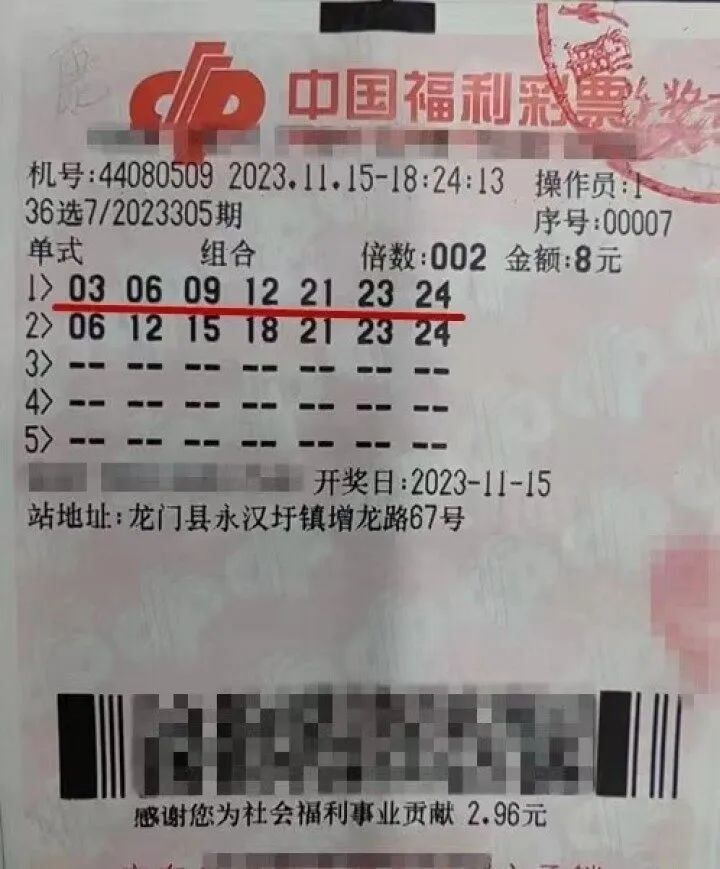 11月15日,“南粵風(fēng)采”36選7游戲第2023305期開獎(jiǎng),當(dāng)期開出的2注一等獎(jiǎng)均花落惠州市。中獎(jiǎng)彩票自惠州市龍門縣永漢圩鎮(zhèn)增龍路44080509福彩銷售站點(diǎn)售出,幸運(yùn)彩民以一張8元自選2倍投注單式票中得一等獎(jiǎng)2注,收獲獎(jiǎng)金共1000萬(wàn)元。