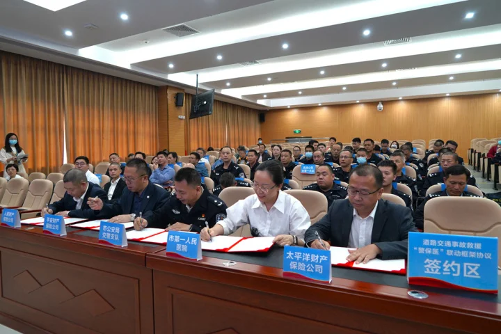 道路交通事故救援“警保醫(yī)”聯(lián)動(dòng)框架協(xié)議簽約現(xiàn)場(chǎng)。