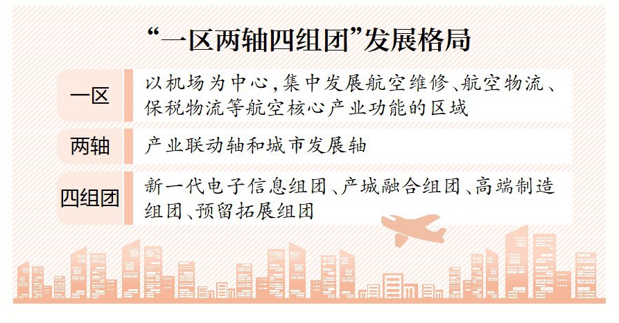 一區(qū)是以機(jī)場為中心,集中發(fā)展航空維修、航空物流、保稅物流等航空核心產(chǎn)業(yè)功能的區(qū)域,是空港經(jīng)濟(jì)區(qū)的核心組成部分。