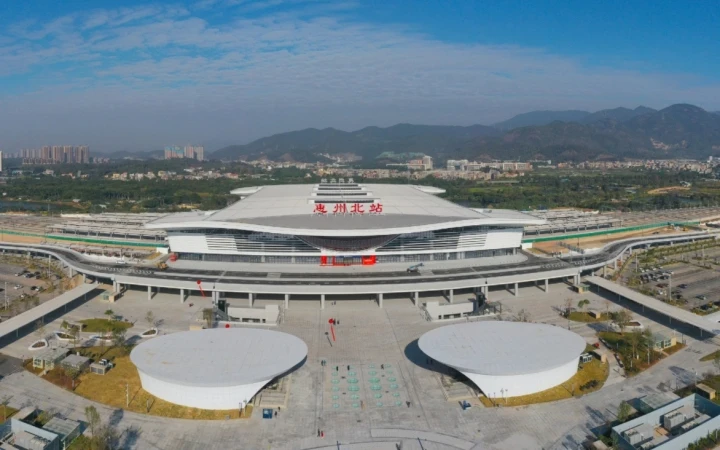 贛深高鐵是連接江西省贛州市與廣東省深圳市的高速鐵路,是我國“八縱八橫”高速鐵路主通道之一“京港(臺)通道”的重要組成部分。惠州北站是贛深高鐵新建的最大站房,位于惠城區(qū)小金口街道。站房形式為設有高架候車室的線側平站,站場為7臺16線,2021年12月10日正式開通運營。
