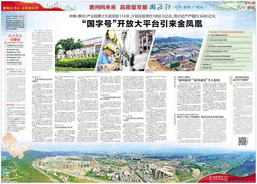 《惠州日?qǐng)?bào)》8月2日專題報(bào)道“喜迎二十大 惠州向未來(lái)——高質(zhì)量發(fā)展園區(qū)行”大型主題采訪活動(dòng)首站走進(jìn)中韓(惠州)產(chǎn)業(yè)園。