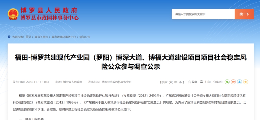 工程名稱:福田-博羅共建現(xiàn)代產(chǎn)業(yè)園(羅陽)博深大道、博福大道建設(shè)項(xiàng)目